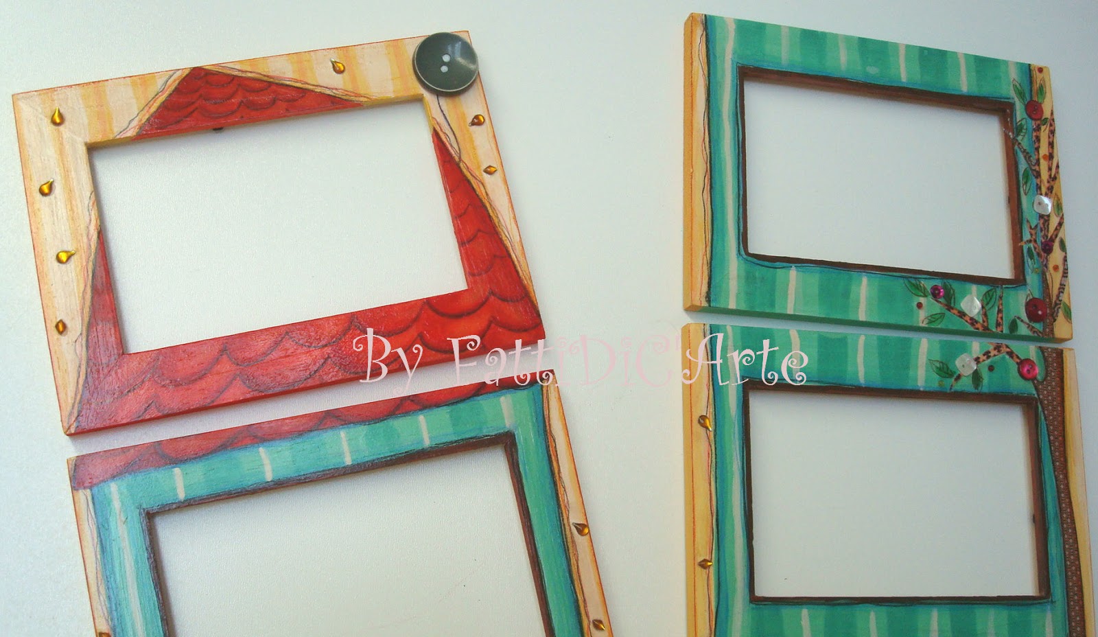 Le cornici sono in legno, dipinte a mano, personalizzabili per colori e formato.